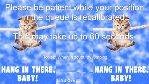 "Please be patient while your position in the queue is recalibrated. This may take up to 60 seconds. - Tooltip: When in doubt, try jumping"