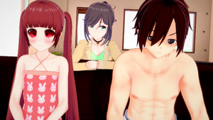 On a "TV Set" that resembles Sensei's house, Sensei, Ami, and Ayane get ready to spend the day at the beach - Though, the latter two's excitement end up upsetting the "production crew" when they start going off-script. On cue, Maya walks in, faux-surprised at the gathering. Excited to see her, Ami tries to get Maya to join them, but she refuses, not wanting to spend the day with Sensei. Taking note of his silence, Maya attempts to pry some words out of Sensei, being surprised when he responds somewhat coherently. Briefly, Sensei mistakes Maya for another girl, asking her for reassurance much to Maya's confusion.
