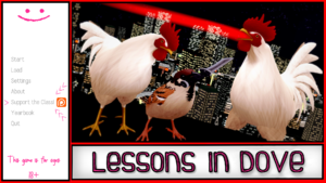 On the 1st of April 2021, Selebus announced Lessons in Dove on the official Discord as a new up and coming game. It is, however, merely a light-mooded joke parodying his own game, Lessons in Love, for Aprils Fools.