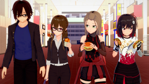 Exhausted after spending so long at Nodoka's book signing, Rin asks if they can finally get something to eat. Nodoka apologizes for making them wait so long, gloating a bit about her book's success before announcing she'll pay for dinner tonight – Sensei quips it'll be adequate payment for using his likeness without permission, causing him and Otoha to bicker over how cheap he usually is. Rin starts to make suggestions for where they'll eat, and while Nodoka offers to take them all out for sushi at a nearby restaurant, this suggestion causes Otoha and Rin some discomfort, not having recovered from the tragedy of their last restaurant date.